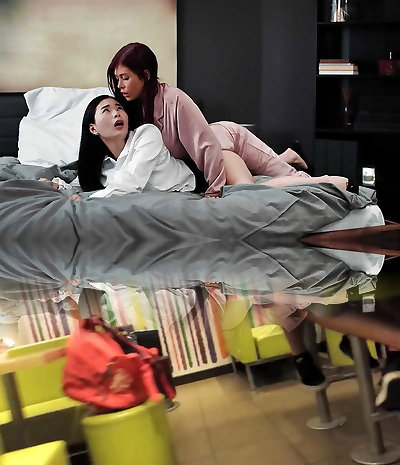 Ts brunette gets sucked by milf and humps