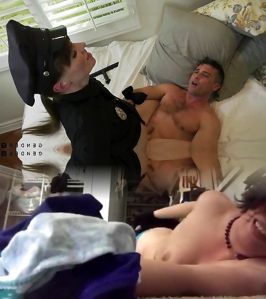 Transgender in police uniform Natalie Mars gets facial after hardcore ass fucking hook-up