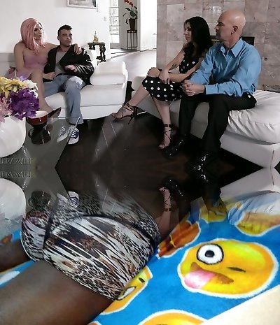 Ravenhead Latin t-girl Carol in ebony outfit with juicy obese butt and her friend polish chocolate eyes each other