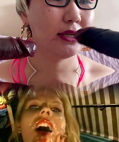 Slave Tgirl Marina worshiping the high-heeled red boots of her Mrs Samantha, and tosses in a good blowjob!
