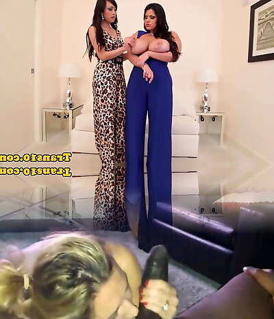 Trans queens Chanel Santini and Marissa Minx fuck a horny dark-haired in an incredible three-way