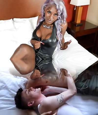 Super adorable transsexual caresses white guy's ass