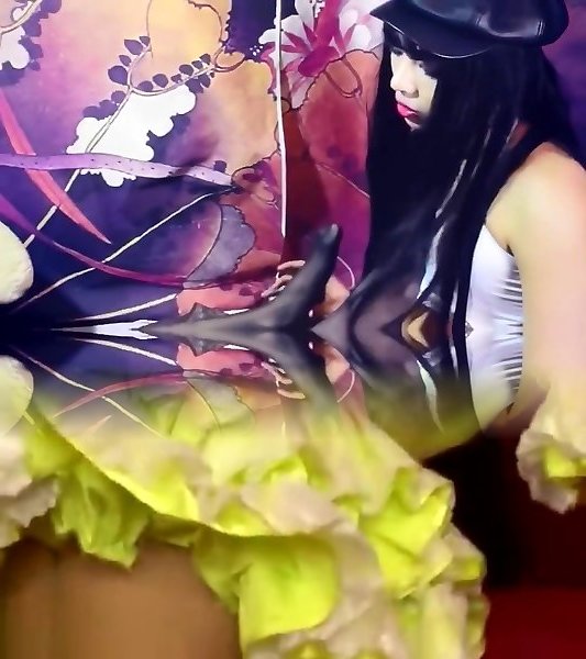 Chinese transgirl beauty stretches her legs and takes a humungous fuckpole