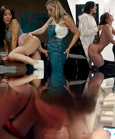 Once Caught On Cuckold, a Brunette Tranny Has To Please 2 Lusty Plump Busty Redheads Wit Her Dick